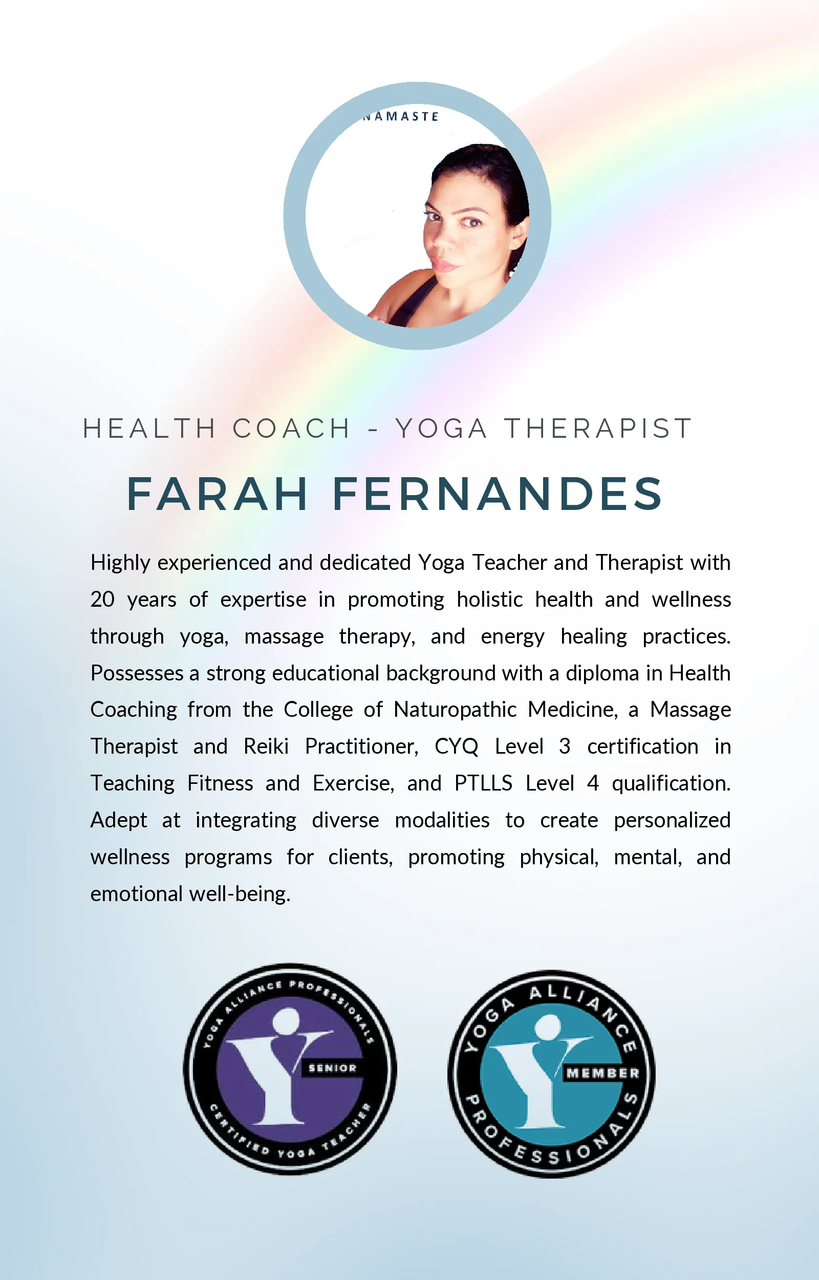 Yoga and Well-Being guide by Farah Fernandes.